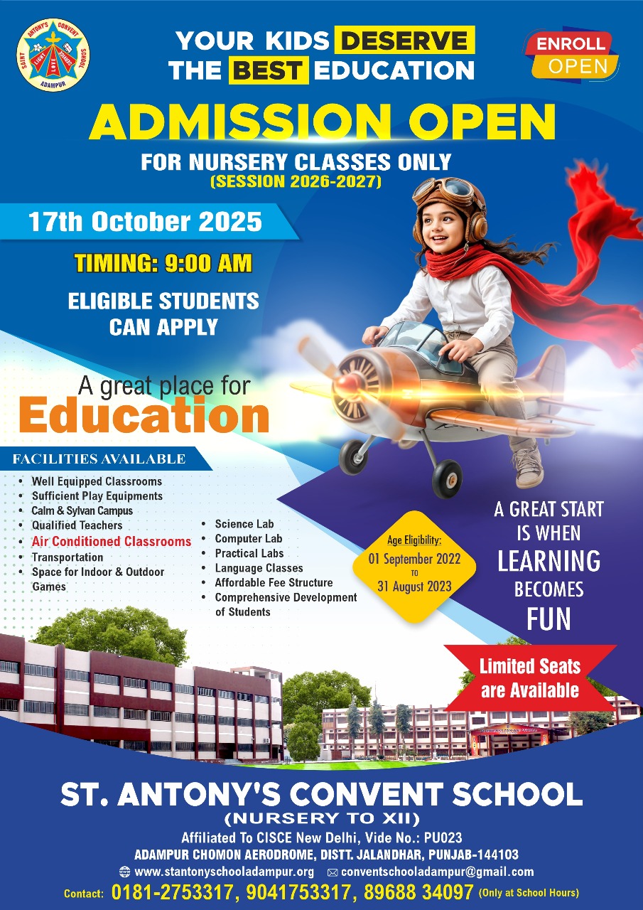 The Diocese of Jalandhar, registered charitable society with its administrative headquarters at Jalandhar, has established a number of convent schools in Punjab and Parts of Himachal Pradesh. The Catholic Church through these institutions offers its contribution to our Nation in the dissemination of holistic and value based knowledge.By striving to maintain academic, professional, and moral excellence these schools provide for the all-round formation of the human personality as much for one's own personal enrichment ....FIND OUR MORE